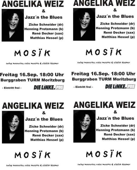 Angelika Weiz kommt mit Zicke Schneider (dr), Henning Protzmann(b),